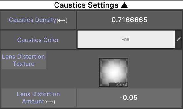 Distortion Texture: Texture for applying a lens distortion. Whites are